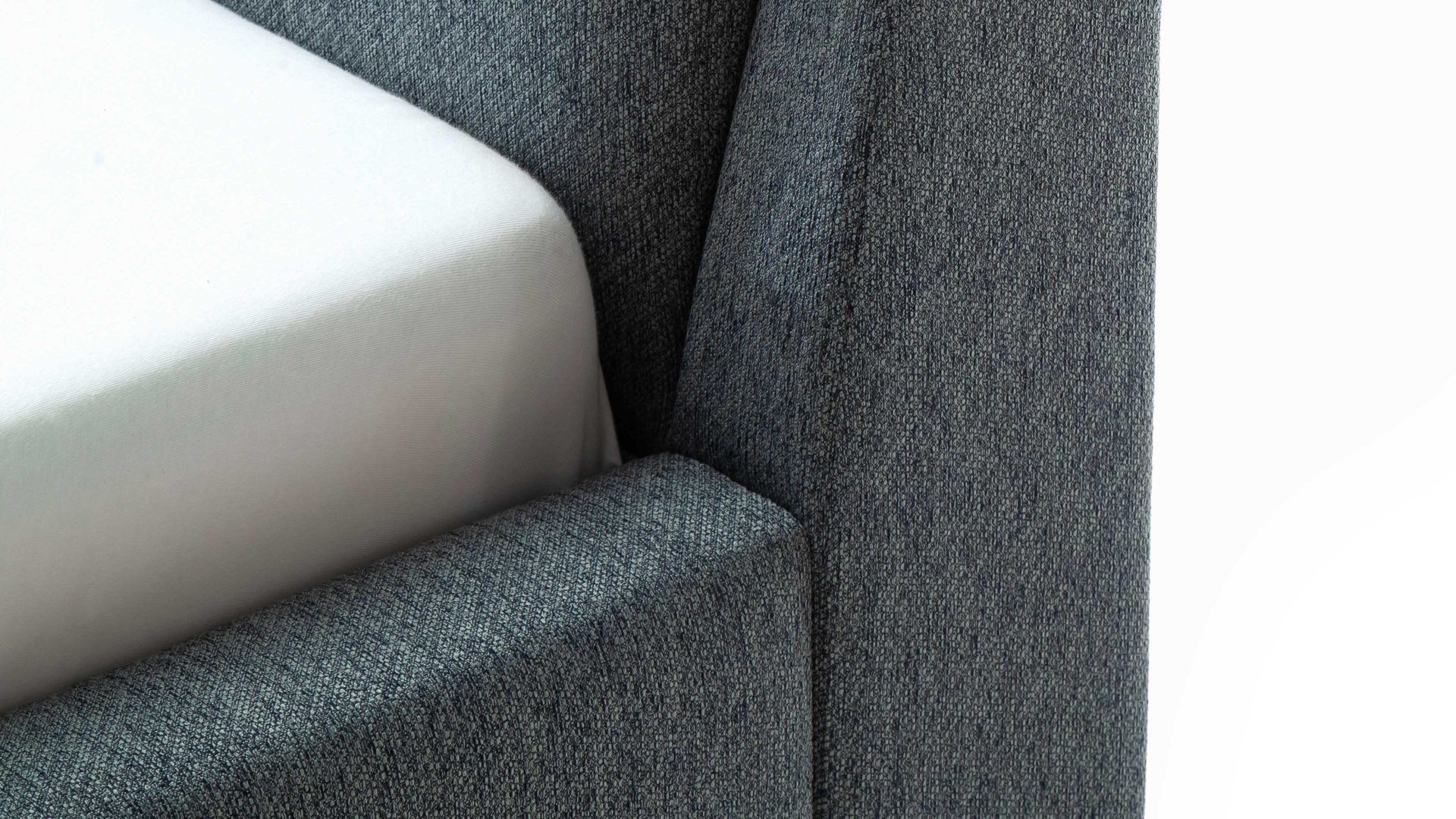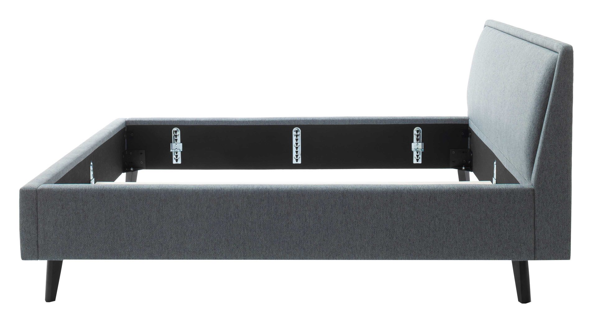 Das Polsterbettgestell Frieda mit Bettkasten verkörpert modernen Komfort. Mit dem oceanfarbenen Stoffbezug und den schwarzen Holzfüßen präsentiert es sich elegant und gemütlich designt. Die Bettseiten sind genauso wie das Polsterkopfteil glatt bezogen. Letzteres ist eine angenehm weiche Rückenlehne, wenn Sie abends im Bett vor dem Schlafen noch entspannt in Ihrem Buch lesen oder fernsehen möchten.