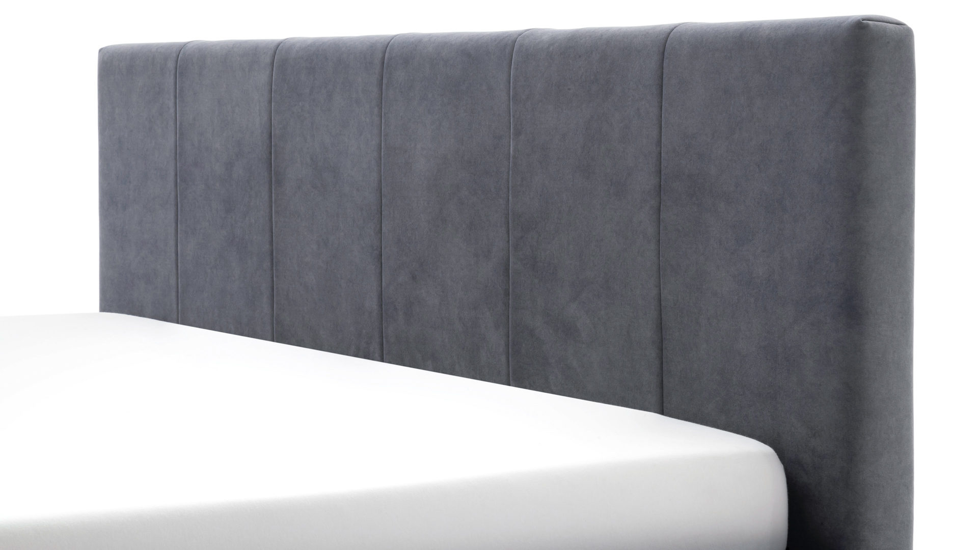 Senkrechte Einzüge zieren das komfortable Kopfteil: Machen Sie es sich daran beim abendlichen Schmökern bequem oder genießen Sie das Sonntagsfrühstück im Bett mit der weichen Rückenstütze.