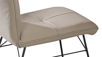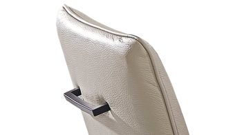 Sitzfläche mit Quadratsteppung, glatt bezogene Rückenlehne mit Metallgriff auf der Rückseite