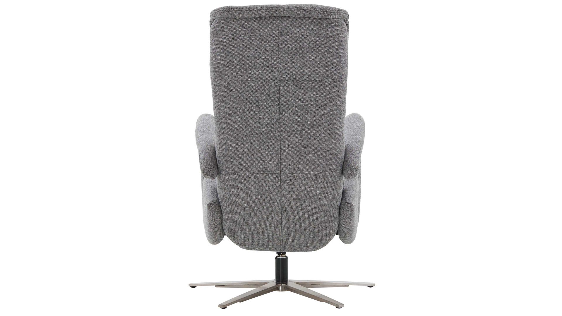Kombinieren Sie den stahlfarbenen Stoffbezug mit kräftigen Farben oder mit modernem Weiß. Denn der edelstahlfarbene Metall-Sternfuß passt hervorragend auch zu einem schlichten Einrichtungsstil. Aber vor allem der Sitzkomfort wird bei diesem Drehsessel großgeschrieben. Denn neben einer Sitzhöhe von ca. 43 cm, einer Sitztiefe von ca. 53 cm und einer Sitzbreite von ca. 51 cm überzeugt der Polstersessel mit einer hochwertigen Schaumpolsterung auf Wellenfederung. Zudem ist der Fernsehsessel 360 Grad drehbar und bietet manuelle Relaxfunktionen: Mittels Körperdruck wird die Rückenlehne gesenkt und der Sitz geht automatisch nach vorn und nach oben.