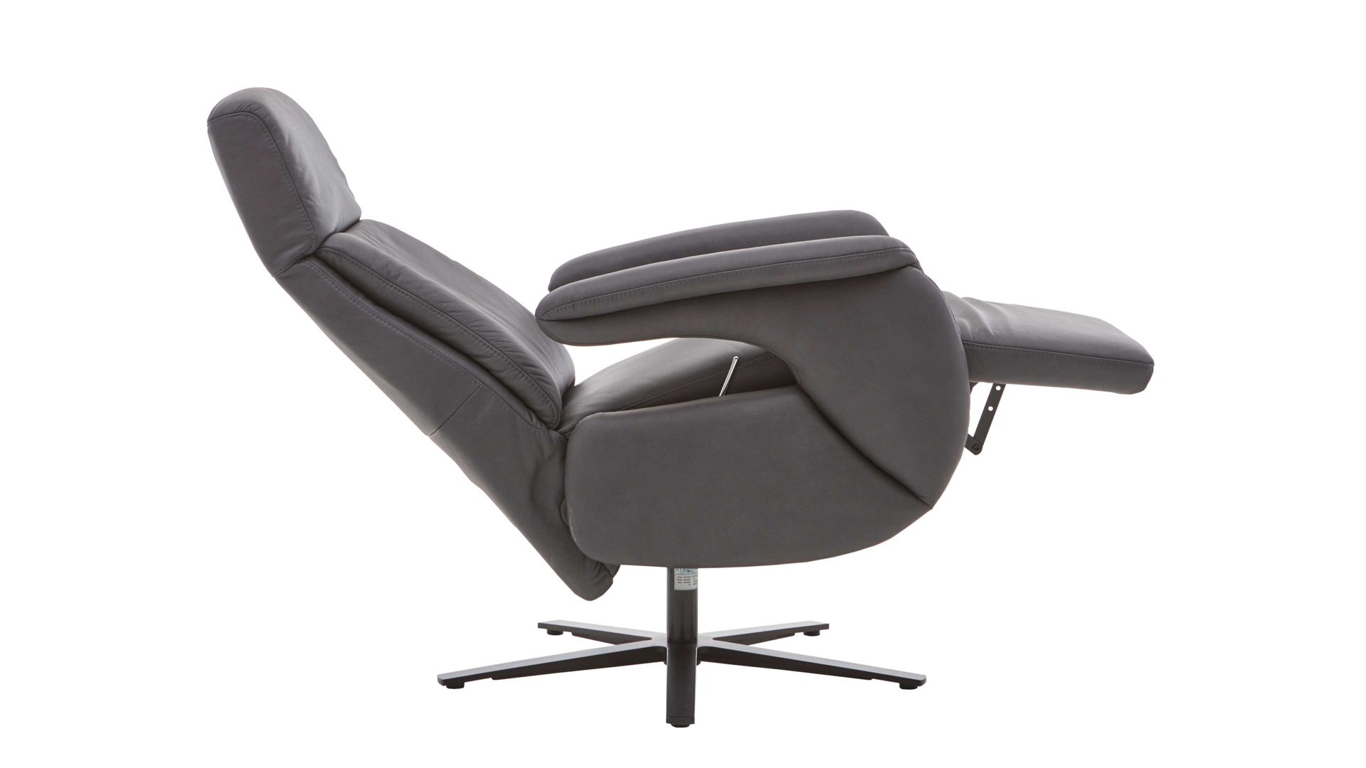Er kombiniert einen edlen anthrazitfarbenen Lederbezug mit einem mattschwarzem Metall-Sternfuß. Die Farben strahlen stilvolle Eleganz aus und harmonieren hervorragend miteinander. Darüber hinaus begeistert die hohe Qualität der Materialien: Der Lederbezug ist strapazierfähig und der robuste Metallfuß sorgt für die nötige Standfestigkeit und Stabilität des TV-Sessels.