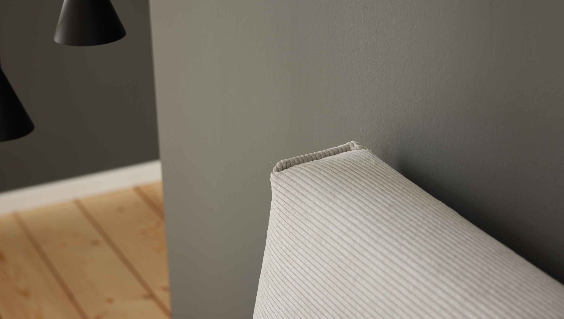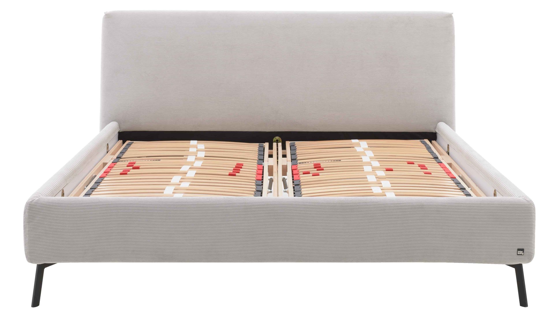 Ein besonderes Gestaltungselement ist das Polsterkopfteil, das mit einem eleganten umlaufenden Keder versehen ist und über eine Rückseite im Originalstoff verfügt. Dadurch macht das Bett auch frei im Raum platziert eine hervorragende Figur. Der glatt bezogene Bettrahmen überzeugt mit einer vierfach höhenverstellbaren Einlegetiefe, sodass sich das Bettgestell optimal an verschiedene Matratzen- und Lattenrostsysteme anpassen lässt.
