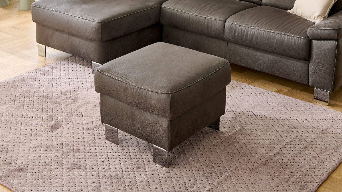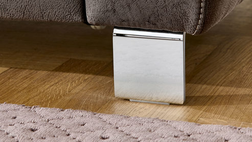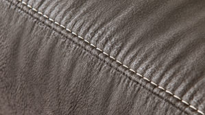 geprägter anthrazitfarbener Mikrofaserbezug mit beiger Kontrastnaht und chromfarbene Metallfüße
