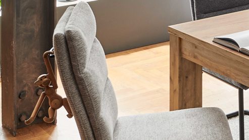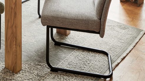 platingrauer Webstoffbezug, kombiniert mit mattschwarzem Eisen-Rundrohr