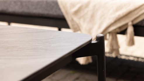Das pulverbeschichtete Aluminiumgestell in Anthrazit sorgt für Stabilität und Korrosionsschutz, ohne dabei schwer oder massiv zu wirken. Es ist witterungs- und UV-beständig und damit perfekt geeignet für den dauerhaften Einsatz im Außenbereich – ob als Terrassen-Beistelltisch, Lounge-Tisch oder stylischer Garten-Couchtisch.