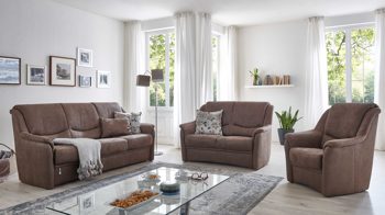 • Die Abbildung zeigt ein Wohnbeispiel, welches auch Dekoration sowie separat erhältliches Zubehör enthält. Im Lieferumfang enthalten sind ein Zweisitzer und ein Dreisitzer ohne Extras.