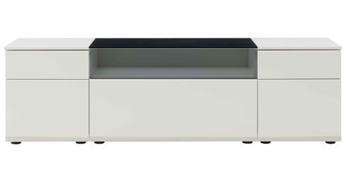 Tonweiß & graues Glas - zwei Türen, eine Schublade, Breite ca. 180 cm
