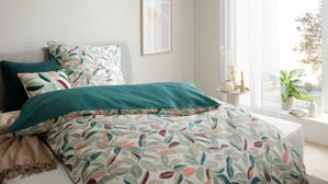 • Die Abbildung zeigt ein Wohnbeispiel, welches auch Dekoration sowie separat erhältliches Zubehör enthält. Im Lieferumfang enthalten sind jeweils ein Kopfkissen- und ein Bettdeckenbezug.